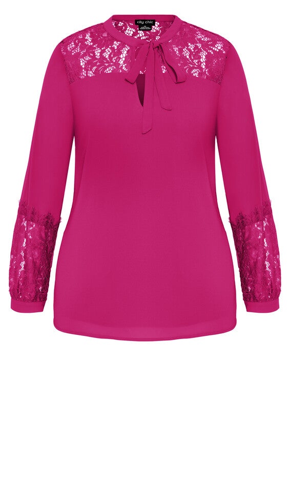 If you're looking to add a pop of color to your wardrobe, look no further than the Mysterious Lace Top in sangria! This pretty top features a V-neckline with a bow neck tie, lace inserts, and long sleeves with lace cuff detail. It's perfect for those chilly days or nights out on the town. And the relaxed fit ensures you'll be comfortable all day long.
