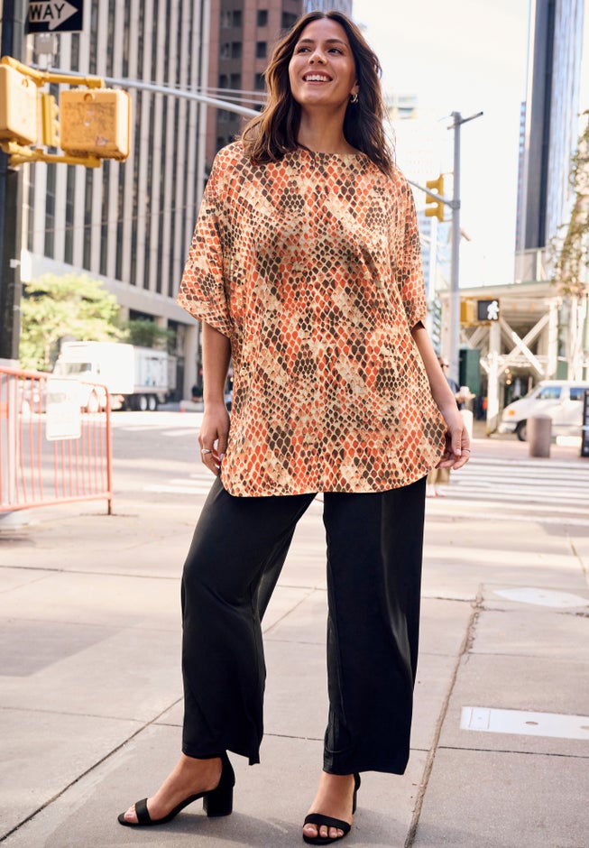 Effortlessly chic and endlessly versatile, this top drapes beautifully with a relaxed, flowy silhouette. The side slit detail adds movement and a flattering touch, making it perfect for both casual days and polished evenings. Pair it with your favorite bottoms for an elevated yet easy look.