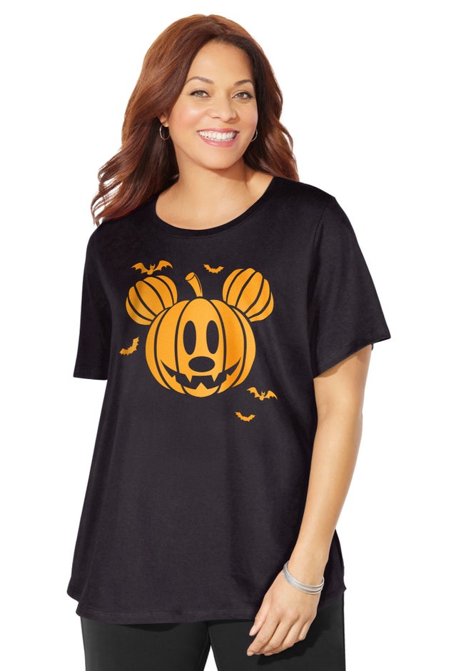 Your favorite Disney characters in the Perfect Tee fit! Fun Halloween prints in this classic crewneck. Wear this flattering relaxed fit short sleeve in any season. This comfy, cute essential pairs perfectly with jeans and leggings.