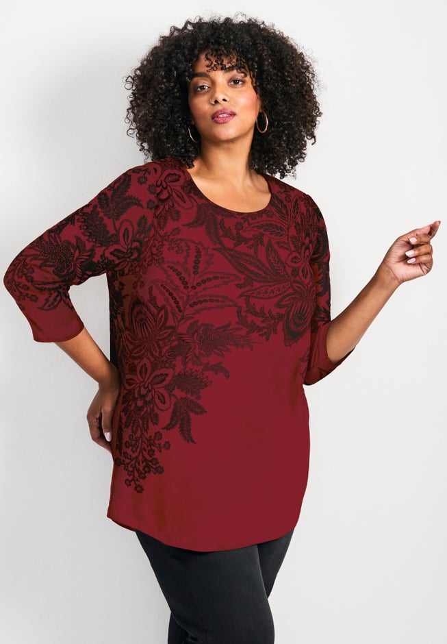 Item Number: 1100825Step into effortless style with the Millie Top—your wardrobe's new best friend! Crafted from stretch viscose elastane jersey, it offers all-day comfort with a chic flair. The 3/4 sleeves add versatility, perfect for any occasion, while the eye-catching placement print ensures you stand out in the crowd!