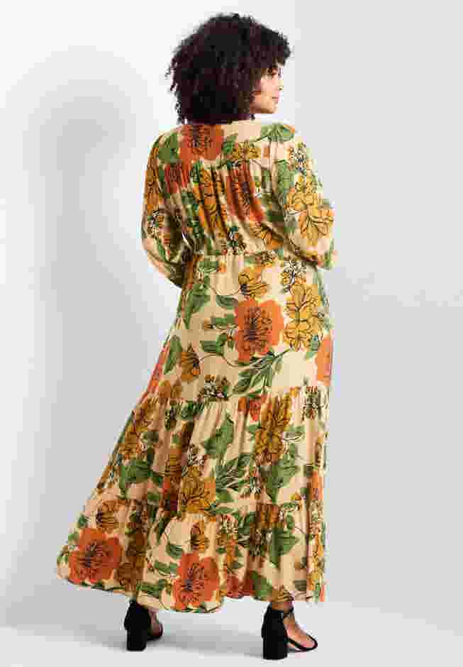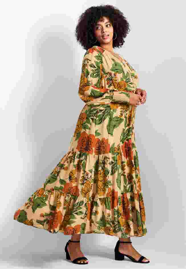 Step into elegance and comfort with the Second Nature Maxi—where style meets effortless. This maxi dress combines a classic V-neckline with a button-through front bodice, creating a look that's both chic and timeless. Designed with long blouson sleeves and a drawstring waist, it cinches to flatter any silhouette while the tiered maxi skirt flows beautifully with every step.