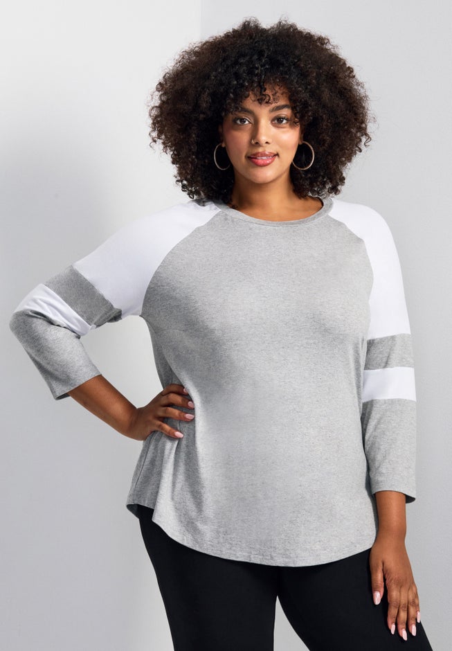 Item Number: 1096959Meet your new wardrobe staple—the Splice Sleeve Colour Top! This classic baseball tee combines effortless style with stretchy viscose elastane for supreme comfort. With its 3/4 sleeves, it’s perfect for everyday wear