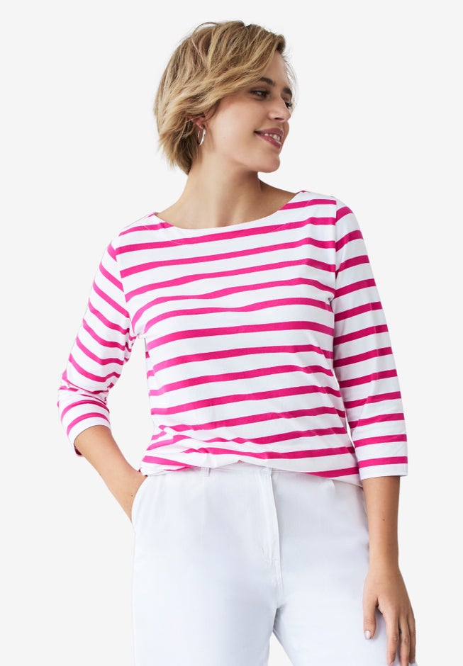 Classically flattering details and incredibly lightweight cotton/spandex jersey make this tee an effortless go-to. Dress it down with jeans or elevate it with work trousers. It’s the everywhere tee you’ll reach for every day.