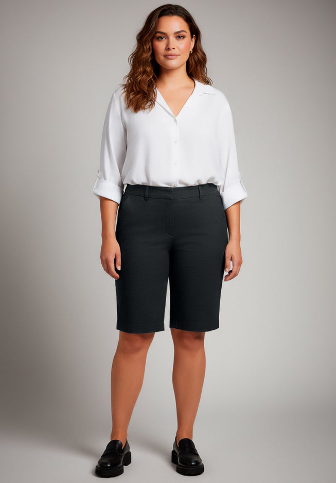 Item Number: 1115229These super-stretch pull-on shorts feature a smooth, easy fit with a clean, streamlined silhouette. Designed with a comfortable waistband and faux pocket detailing, they offer flexibility and a polished look without sacrificing comfort. Perfect for everyday wear, they move effortlessly from casual outings to relaxed days at home.