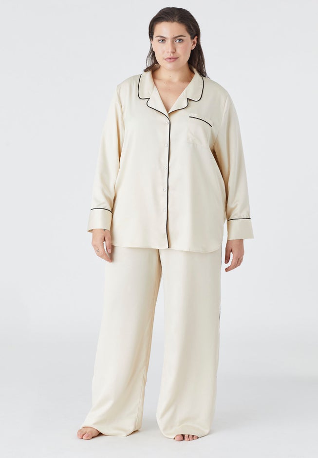 Bring the luxurious comfort of CUUP to bed. Spun from sustainable, recycled satin, this pajama set flaunts a relaxed fit, luxe feel, and stylish details – essential for a restful night’s sleep.